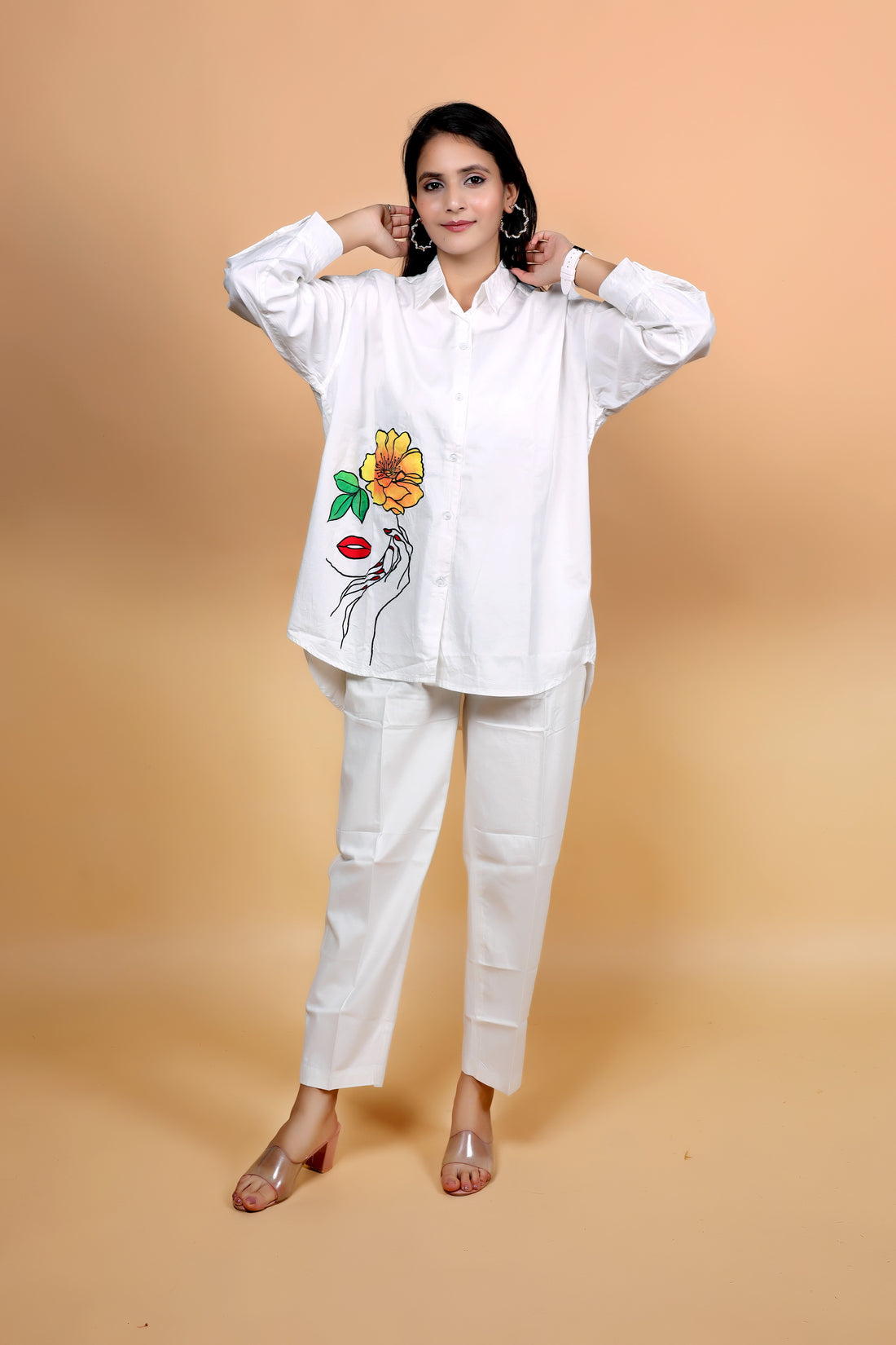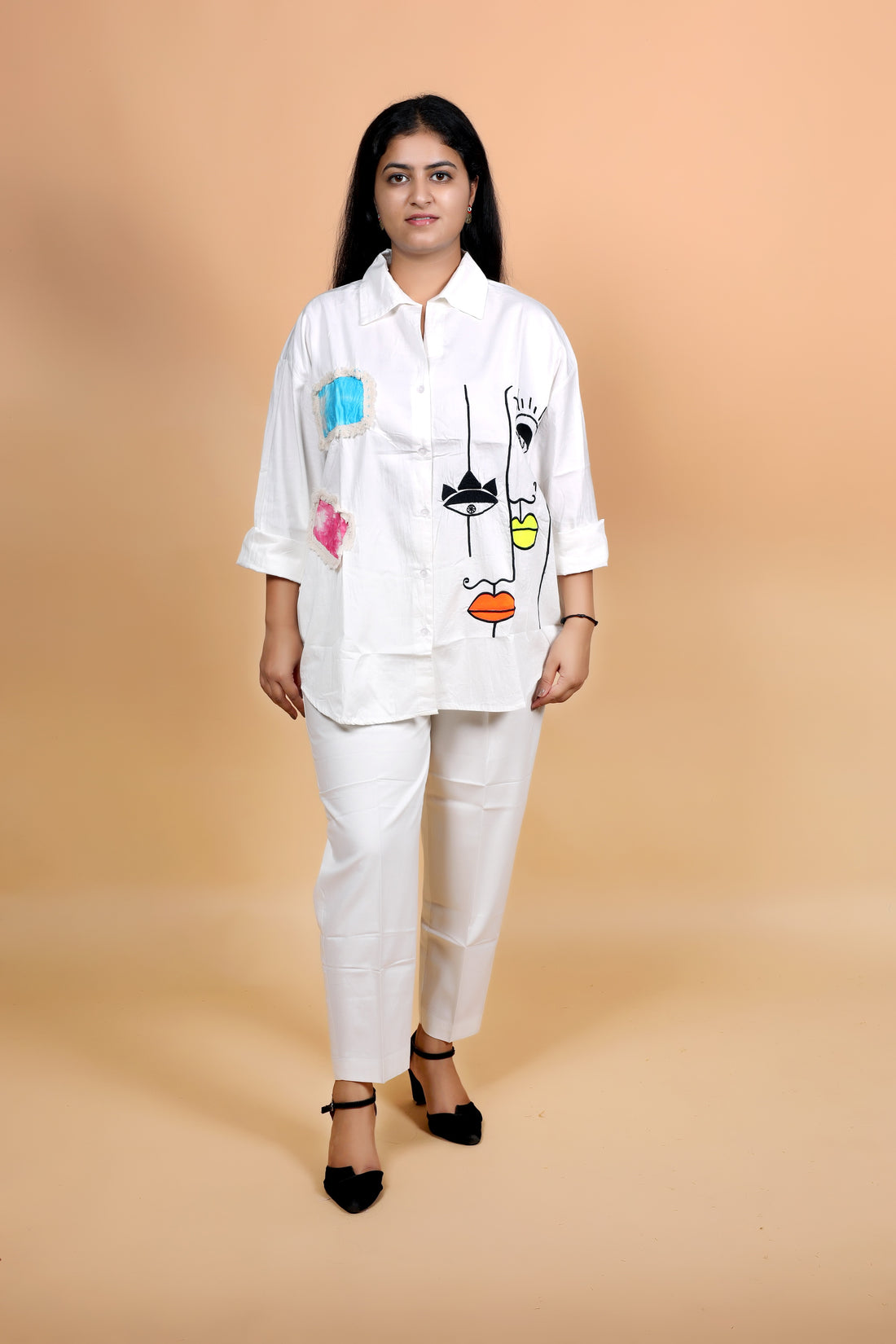 A canvas of elegance and creativity, this white shirt is more than just clothing—it’s wearable...